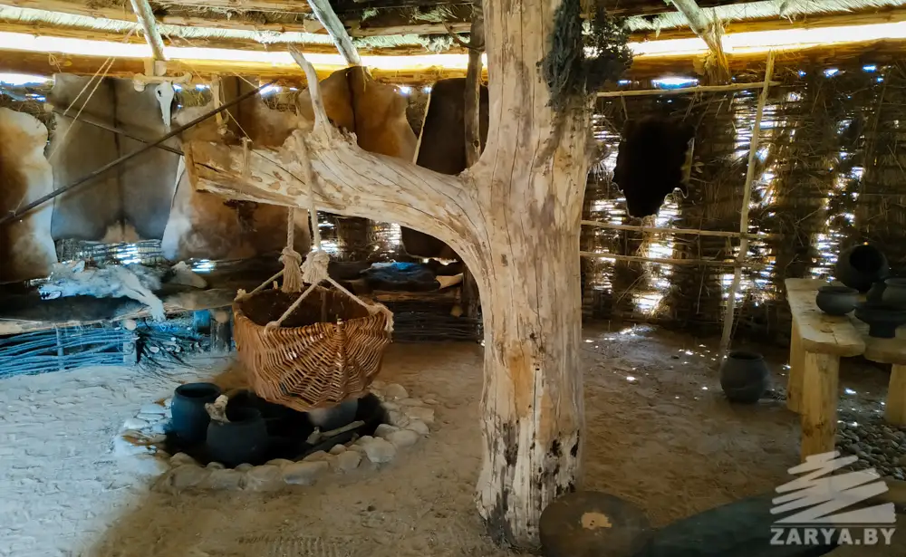 Тут воссозданы жилища и подворья, показывающие быт и обычаи ранних славян проживающих на территории Беларуси в те времена. Экспонаты воссоздают древние воинское дело, сельское хозяйство и животноводство, а также ремесла и промыслы.