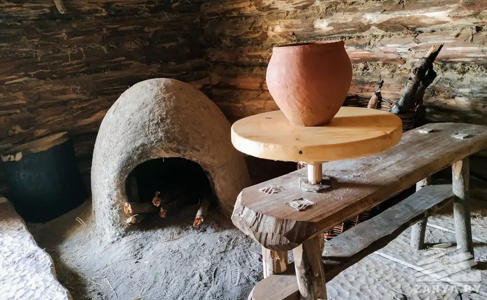 Посетители музея могут увидеть подворье и бытовые принадлежности гончара, хлебороба, мастерские прядения и ткачества, деревообработки и лозоплетения.