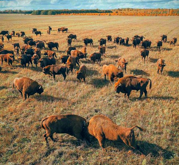 Белорусский фотограф Димид Важник обнаружил стадо более, чем в сто голов, и стал свидетелем боя за роль вожака. Фотографии Важник опубликовал в своем инстаграме.